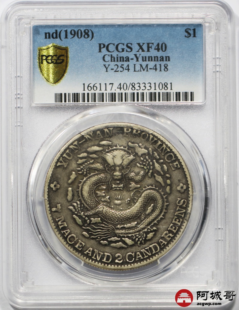 Lot:7 老云南光绪七钱二分 PCGS XF40