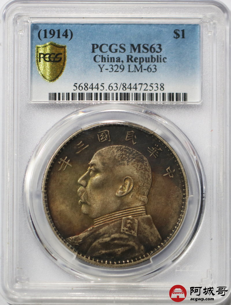 Lot:1 民国三年大头 老五彩 PCGS MS63