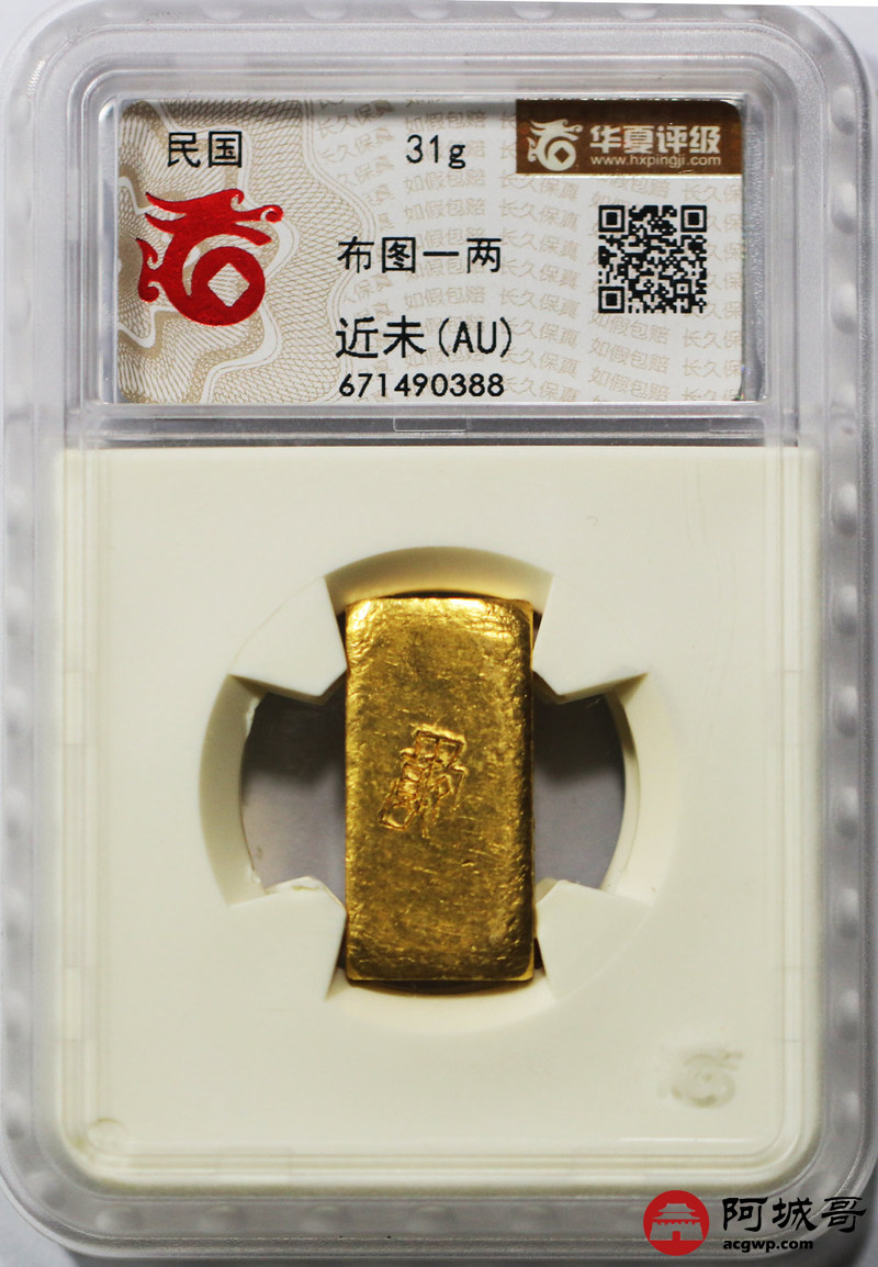 Lot:16 bb民国布图厂条一两金锭 华夏评级 31克