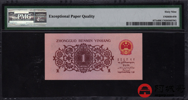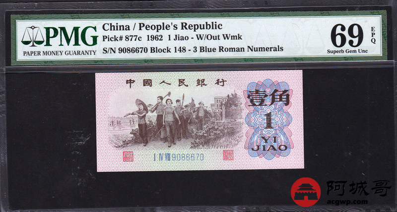 Lot:23 1962年 壹角 中国人民银行 PMG 69 EPQ