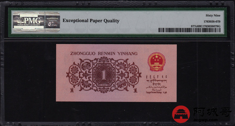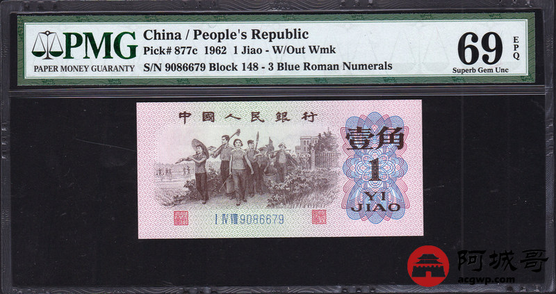 Lot:19 1962年 壹角 中国人民银行 PMG 69 EPQ