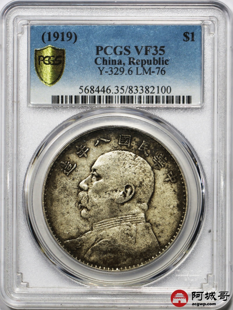 Lot:8 民国八年大头 壹圆 PCGS VF35