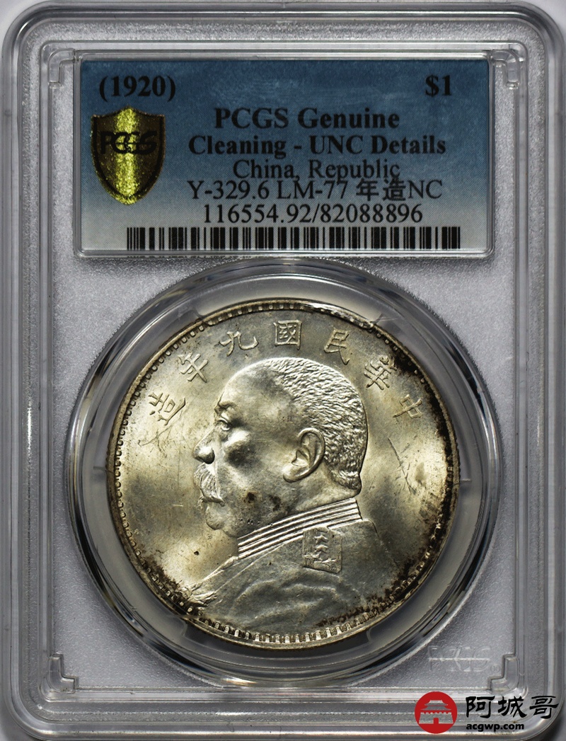 Lot:20 民国九年大头 原光未使用 PCGS UNC