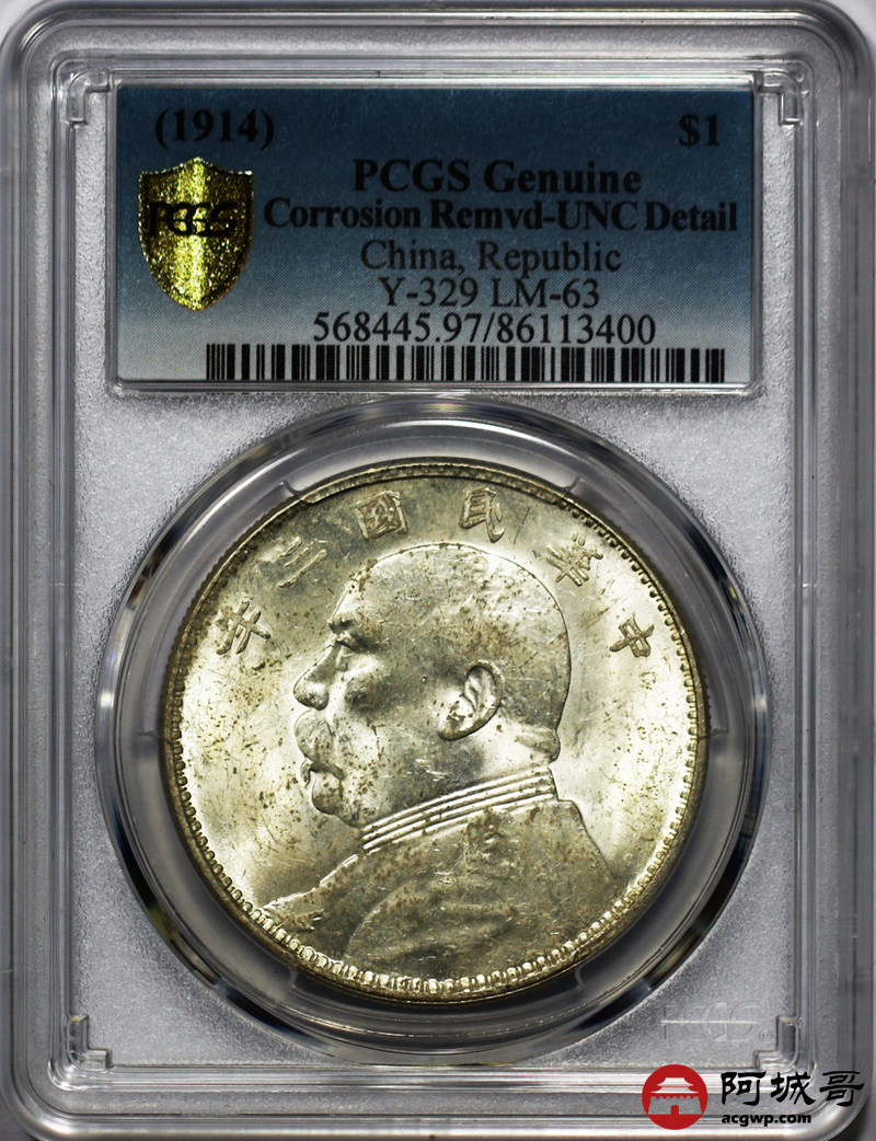 Lot:10 民国三年大头壹圆 转光 PCGS UNC