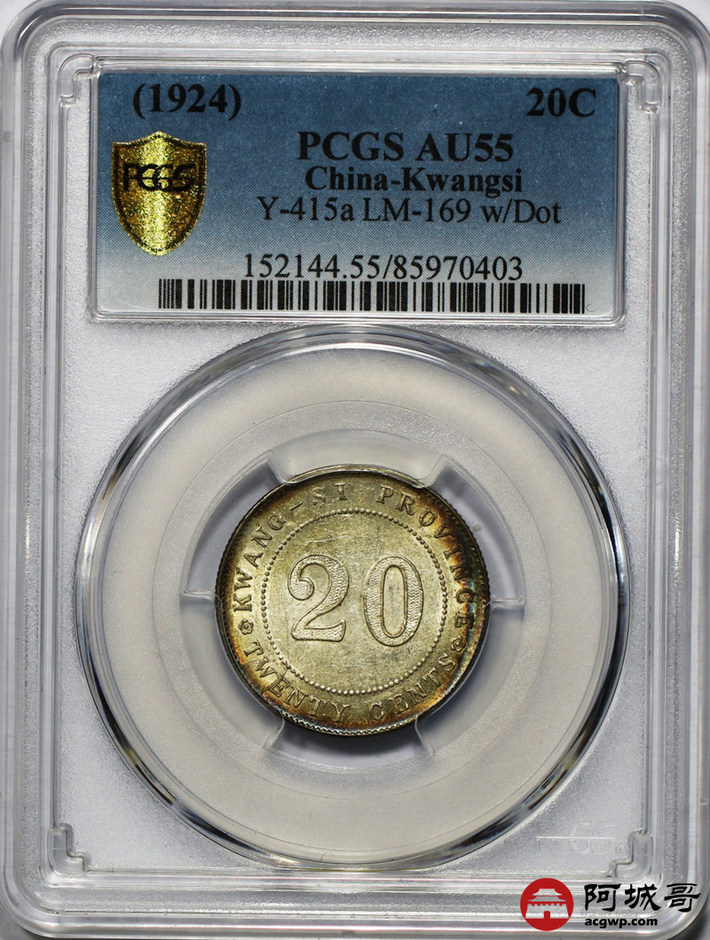 Lot:29 民国十三年广西贰豪 PCGS AU55