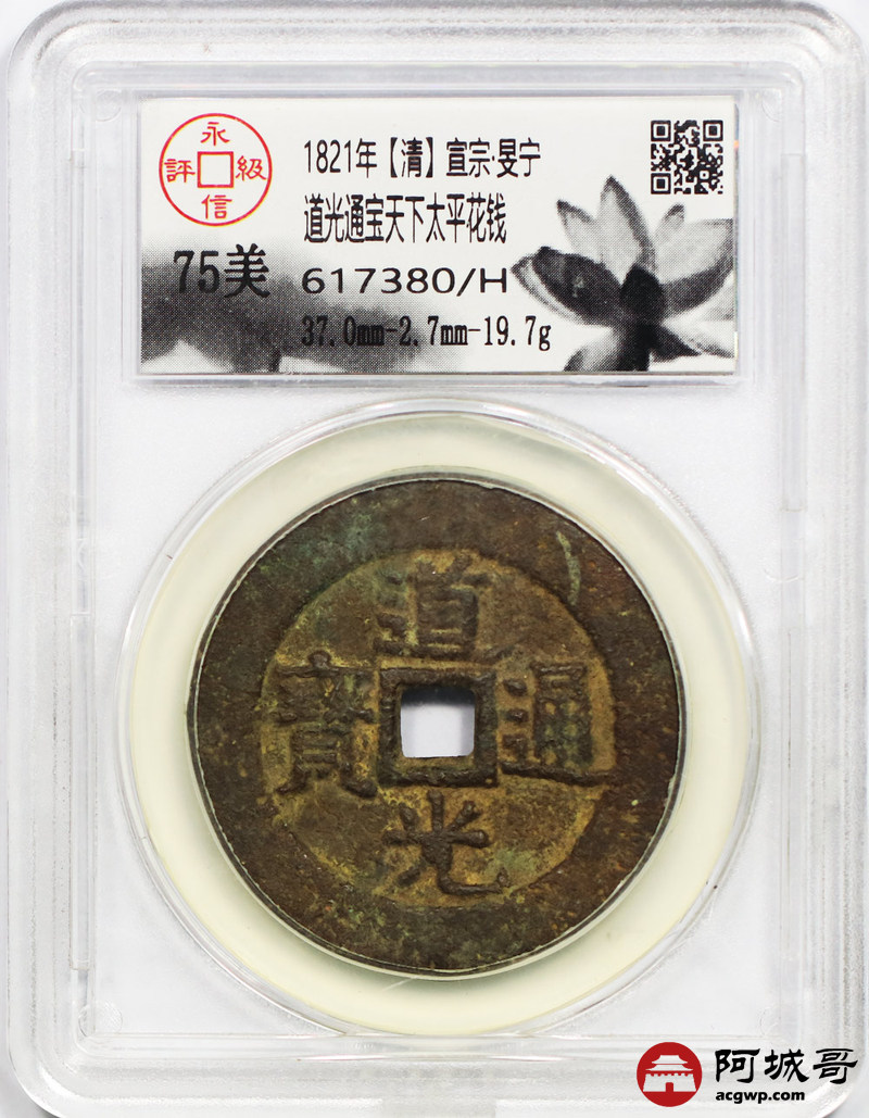 Lot:22 道光通宝天下太平花钱 永信评级 75美