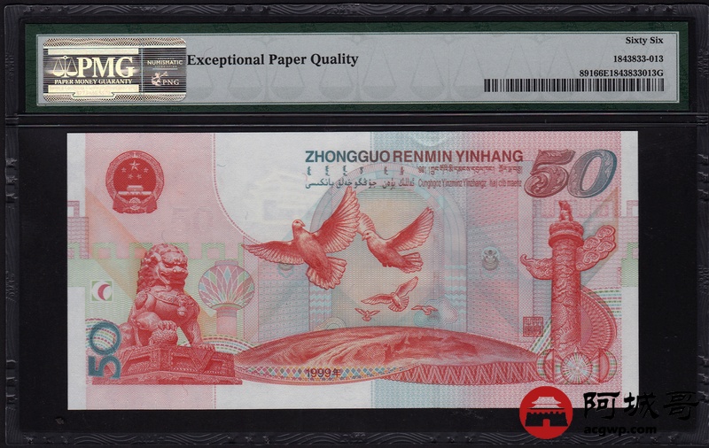 Lot:13 1999年 伍拾圆建国钞 中国人民银行 PMG 66 EPQ 好号无47