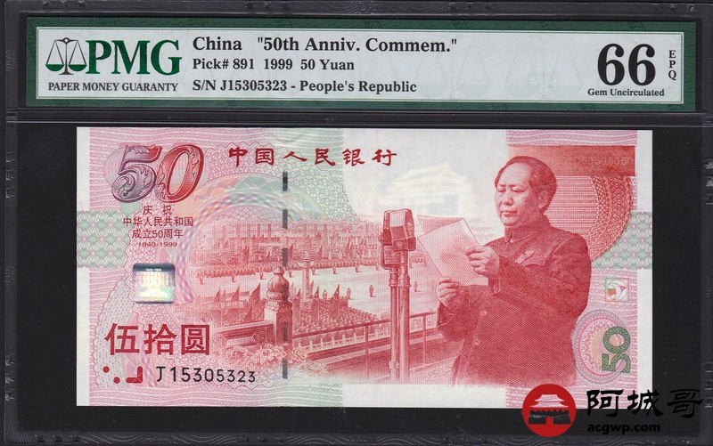 Lot:23 1999年 伍拾圆建国钞 中国人民银行 PMG 66 EPQ 好号无47
