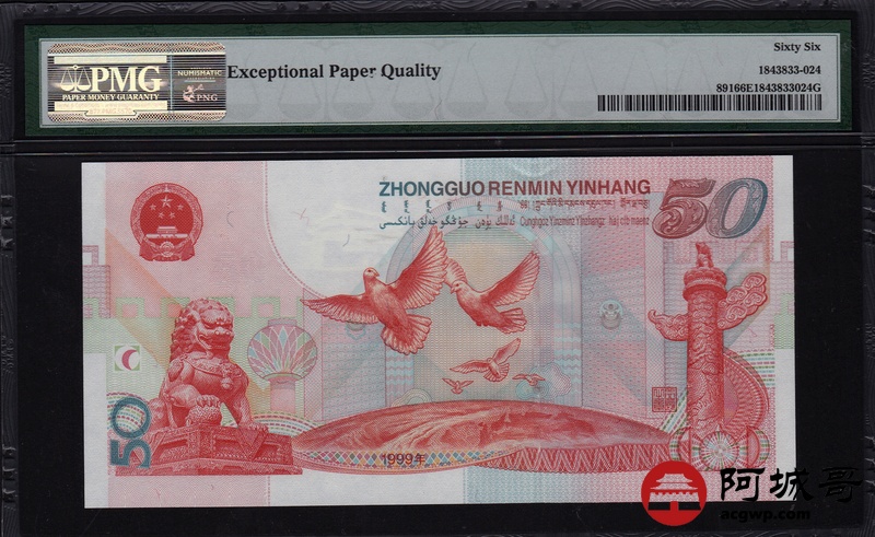 Lot:24 1999年 伍拾圆建国钞 中国人民银行 PMG 66 EPQ