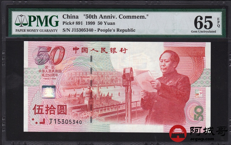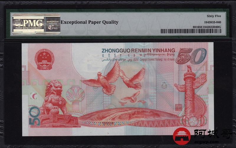 Lot:40 1999年 伍拾圆建国钞 中国人民银行 PMG 65 EPQ