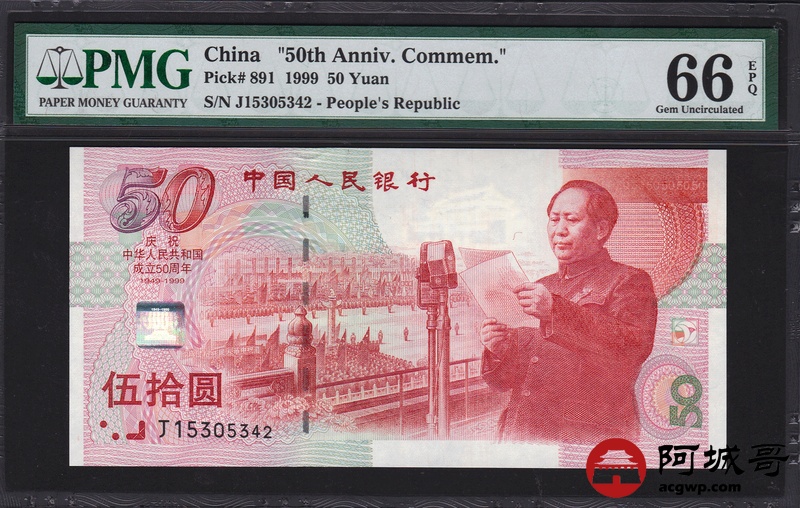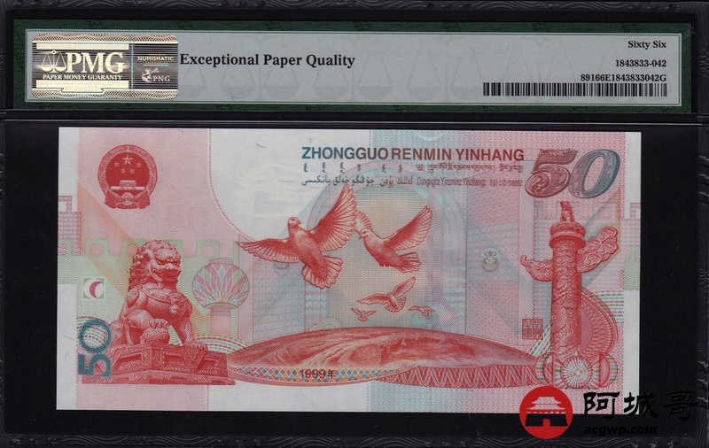 Lot:42 1999年 伍拾圆建国钞 中国人民银行 PMG 66 EPQ