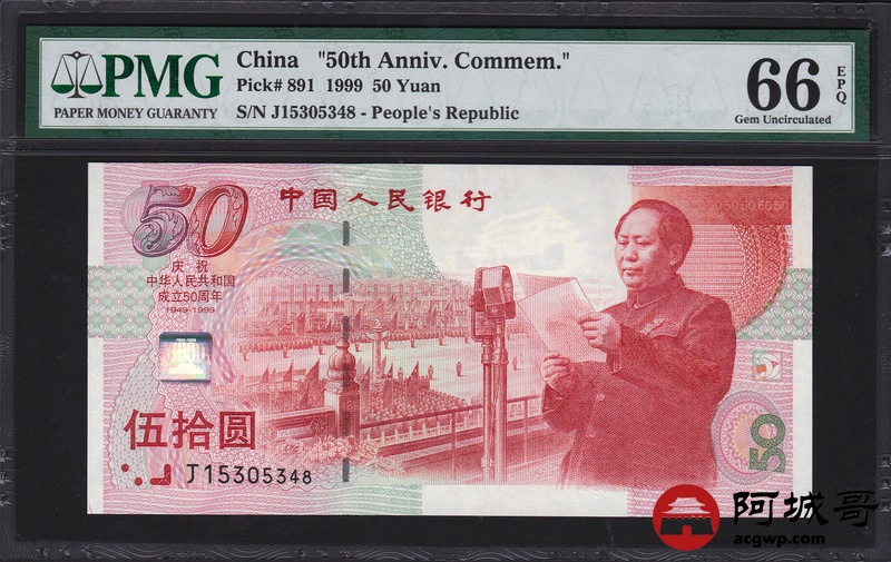 Lot:48 1999年 伍拾圆建国钞 中国人民银行 PMG 66 EPQ
