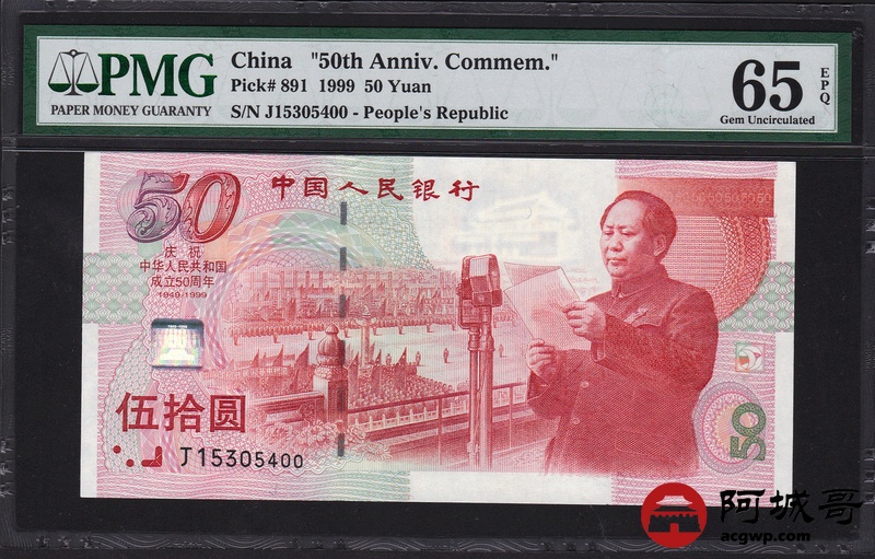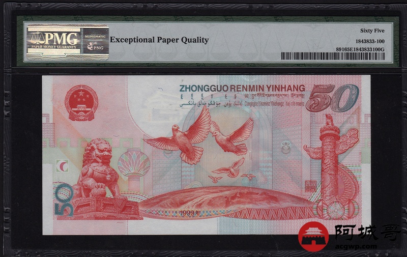 Lot:100 1999年 伍拾圆建国钞 中国人民银行 PMG 65EPQ