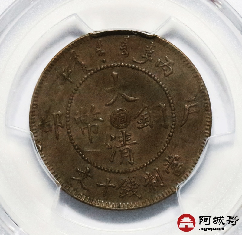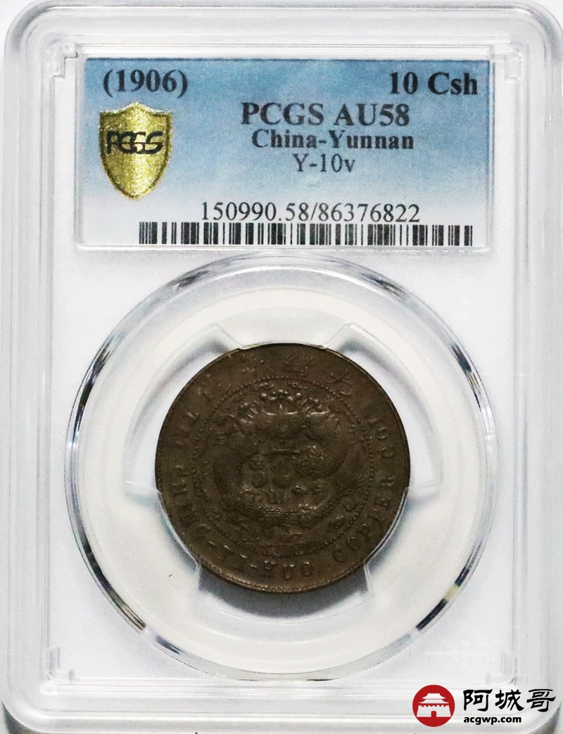 Lot:15 光绪年造 大清铜币 中心滇 PCGS AU58