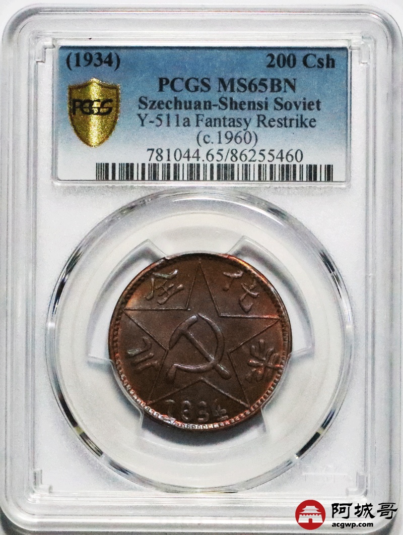 Lot:9 苏维埃铜币200文 PCGS MS65BN