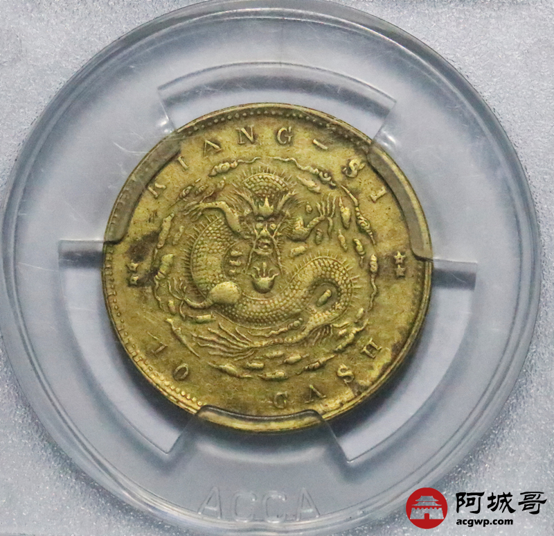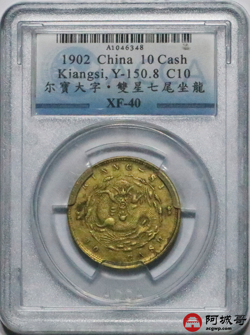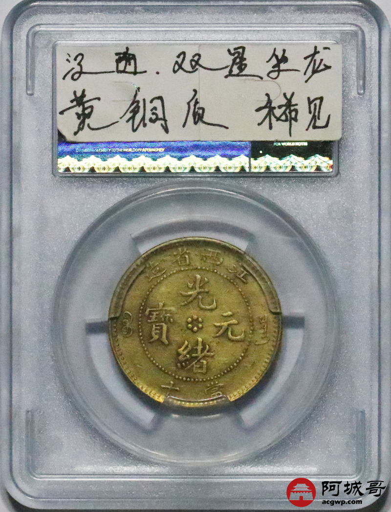 Lot:21 江西光绪双星坐龙黄铜质 ACCA XF40