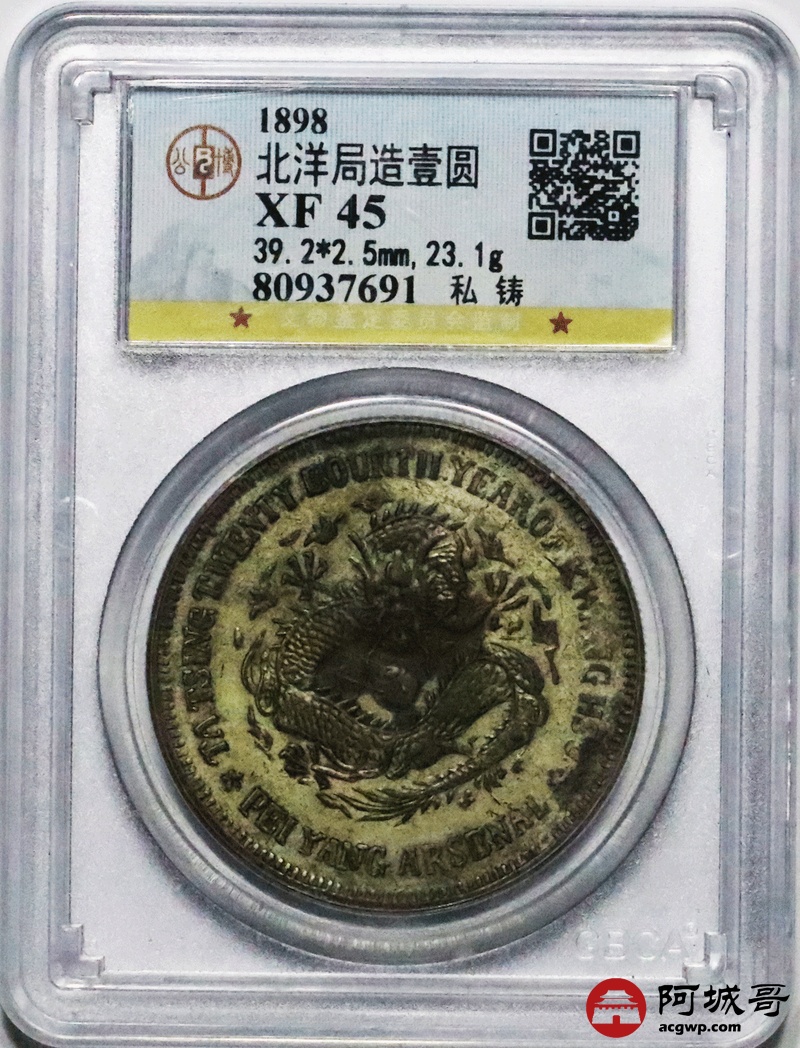 Lot:34 原味老包浆 北洋二十四年机器局造壹圆 私铸公博XF45