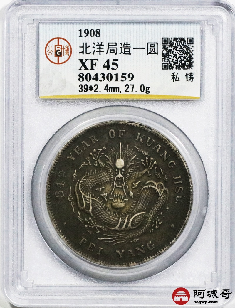 Lot:1 北洋34年七钱二分 私铸 GBCA XF45