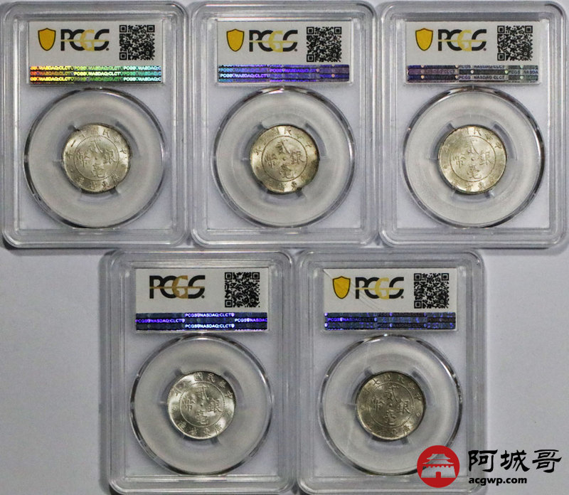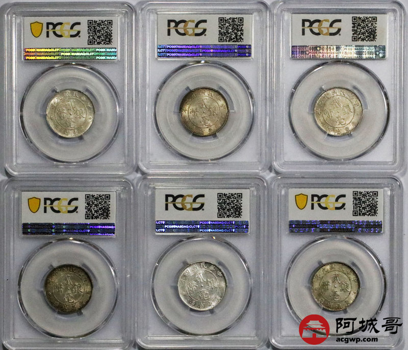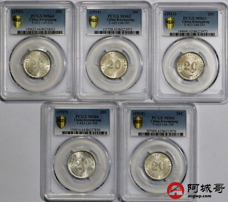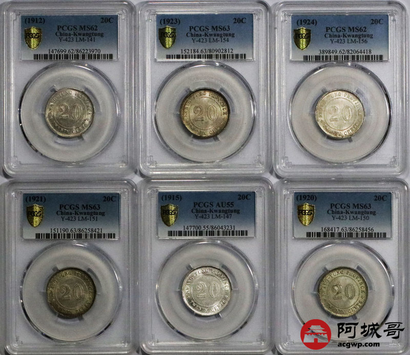 Lot:45 广东省造贰豪11枚一套-元年 MS62-二年MS63-三年MS63-四年AU55-七年MS62-八年MS64-九年MS63-十年MS63-十一年MS64-十二年MS63-十三年MS62