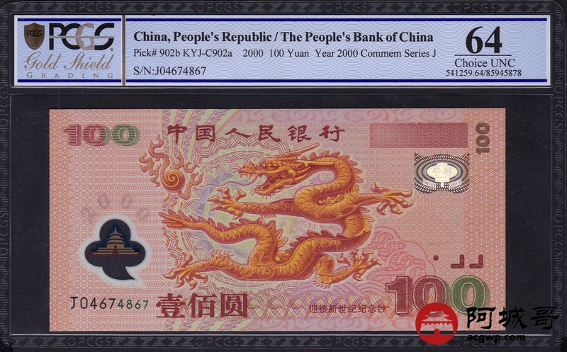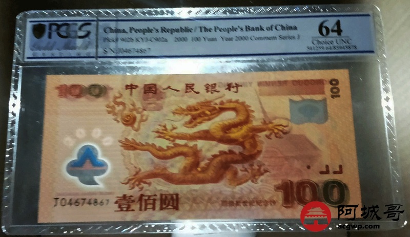 Lot:31 2000年 壹佰圆 龙钞 中国人民银行 PCGS 64