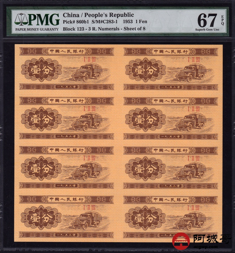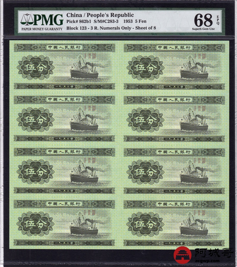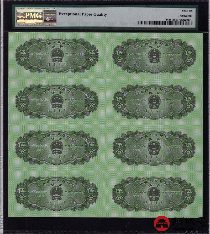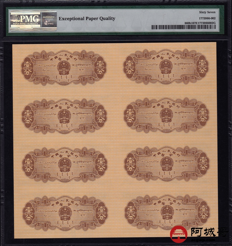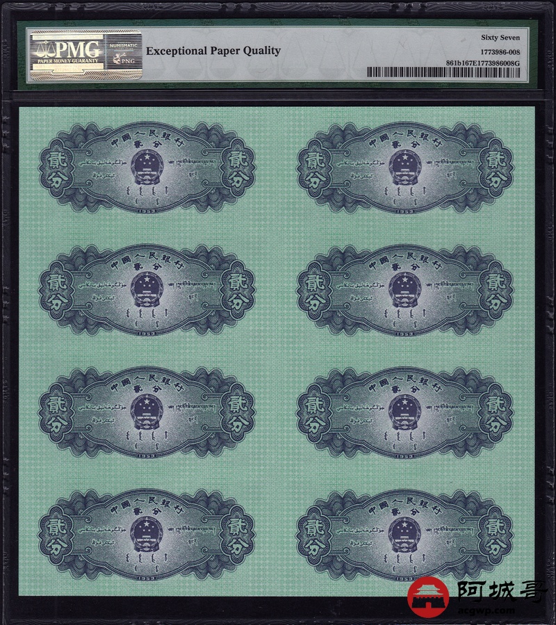 Lot:20 第二套人民币纸分币连体钞一套 PMG 68EPQ、PMG 67 EPQ 带册带证书