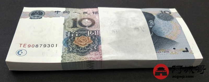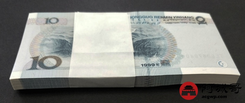 Lot:19 五版人民币 1999年 拾圆 中国人民银行 一刀 好号无4 原票全新