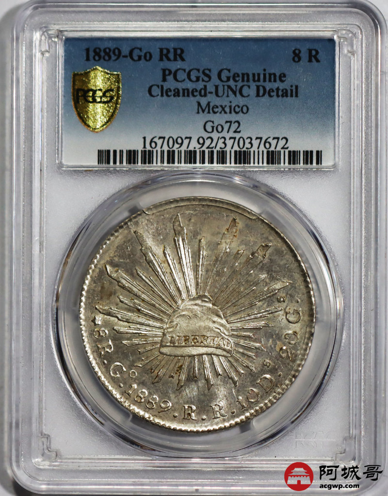 Lot:58 镜面 1889年墨西哥鹰洋 PCGS UNC