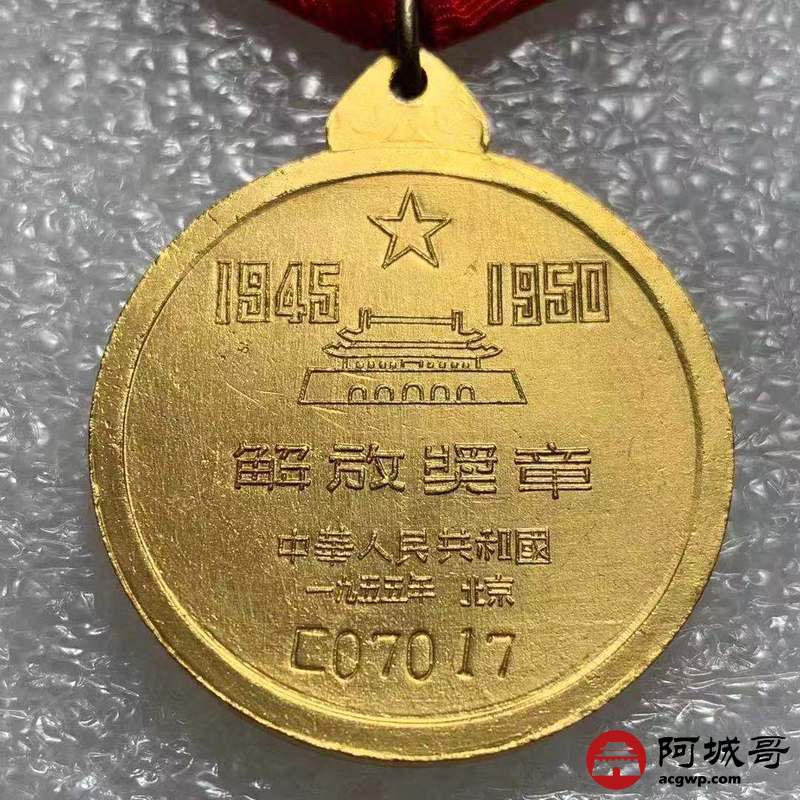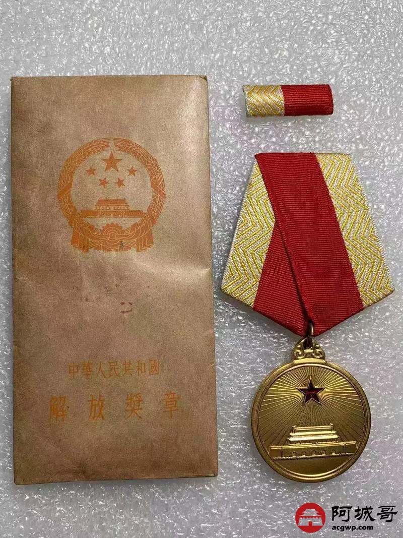 Lot:15 a原光一套 鎏金解放奖章 未流通 品相 极美品