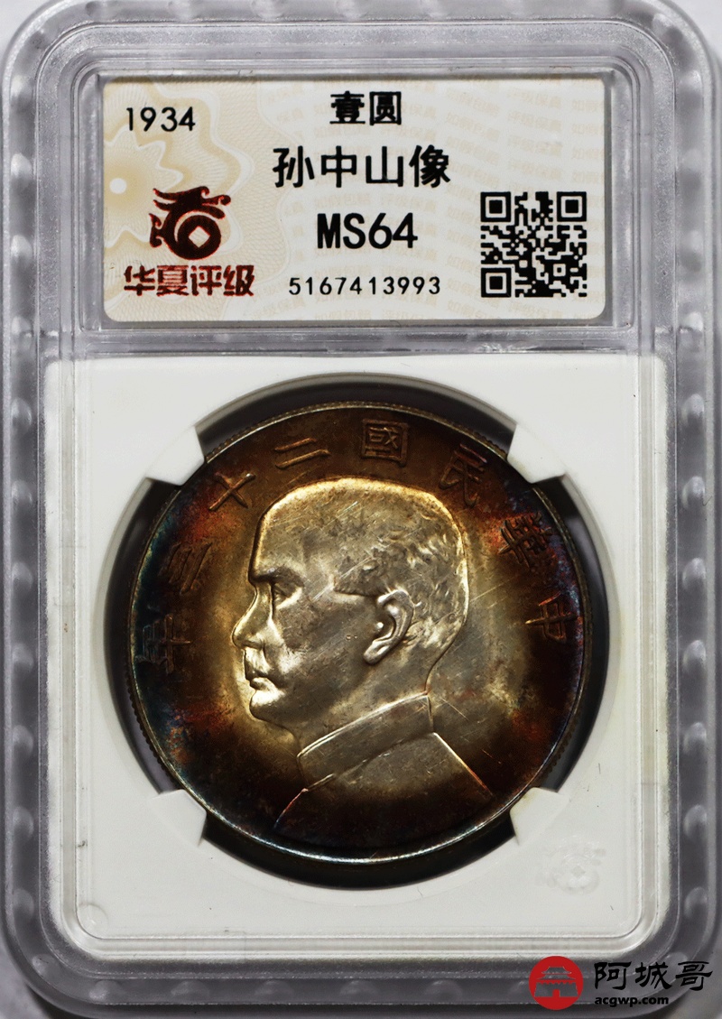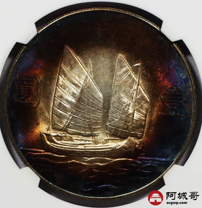 Lot:null 民国二十三年船洋 五彩 华夏评级 MS64
