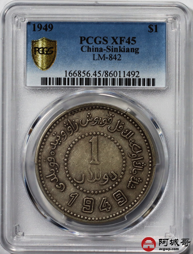 Lot:null 原味深打 老包浆民国三十八年新疆1949壹圆 PCGS XF45