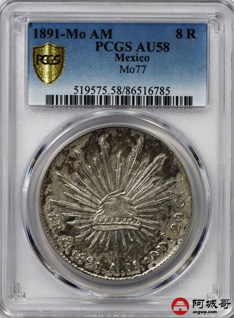 Lot:13 五彩转光 1891年莫西哥鹰洋 PCGS AU58