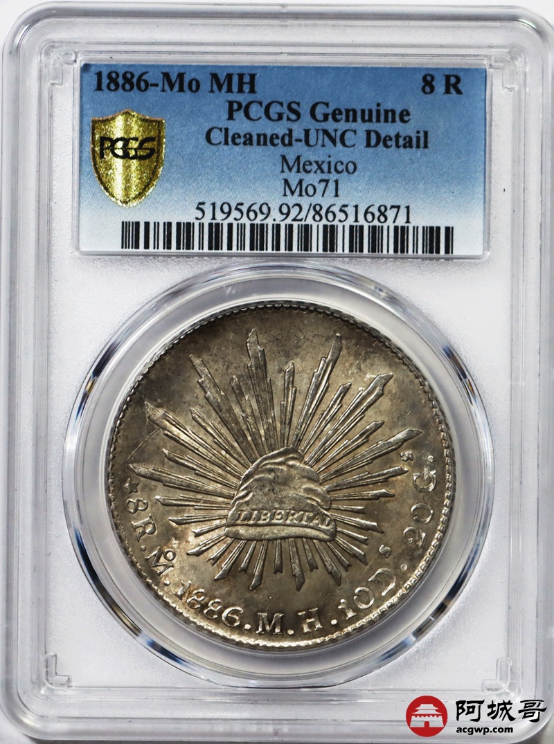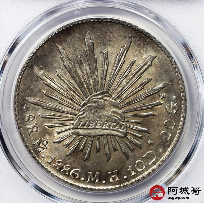 Lot:22 1886年 原光 墨西哥鹰洋 8瑞尔 PCGS UNC