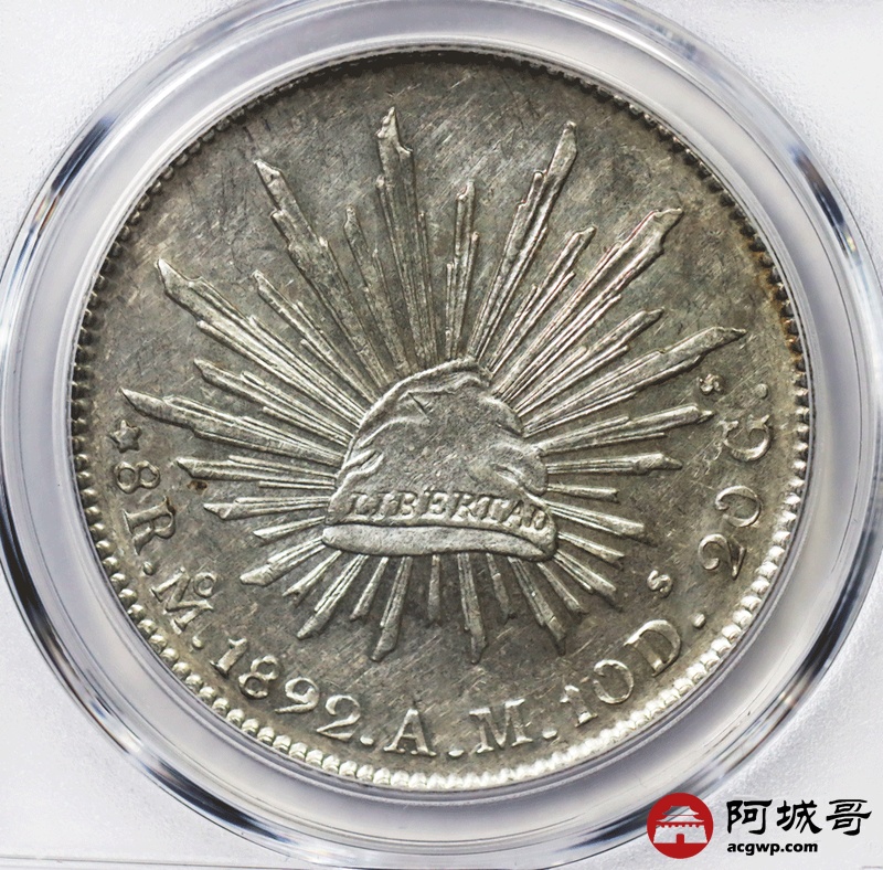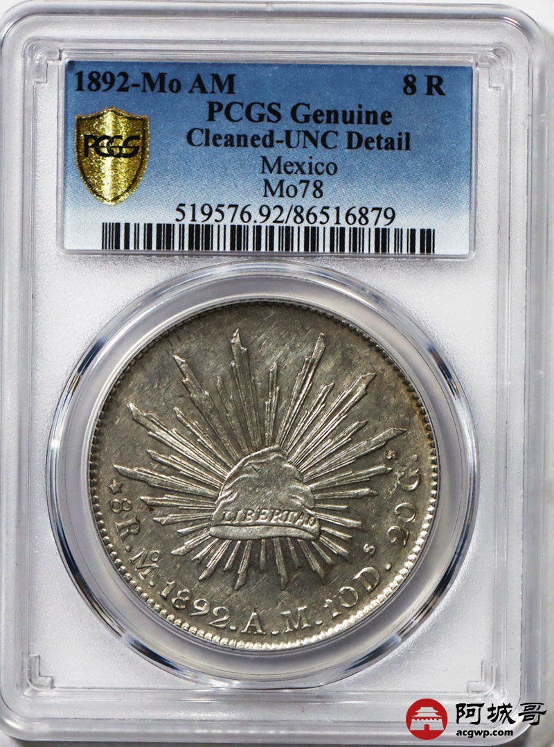 Lot:8 转光 1892年 墨西哥鹰洋 8瑞尔 PCGS UNC