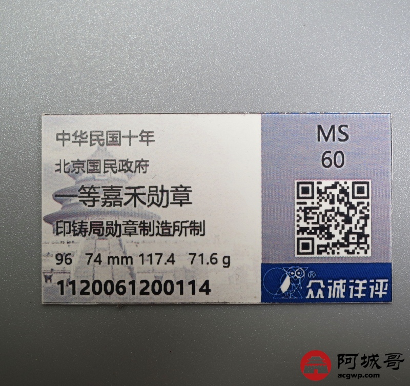 Lot:18 一等嘉禾勋章 众城详评MS65
