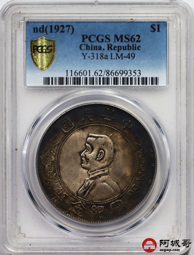 Lot:20 环彩 开国纪念小头壹圆 PCGS MS62