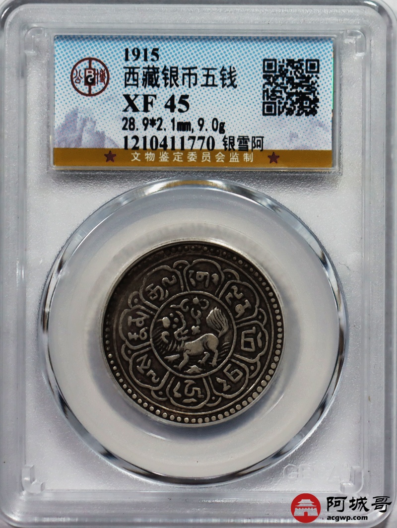 Lot:52 1915回头狮 银雪阿 西藏雪阿银币 公博 XF45