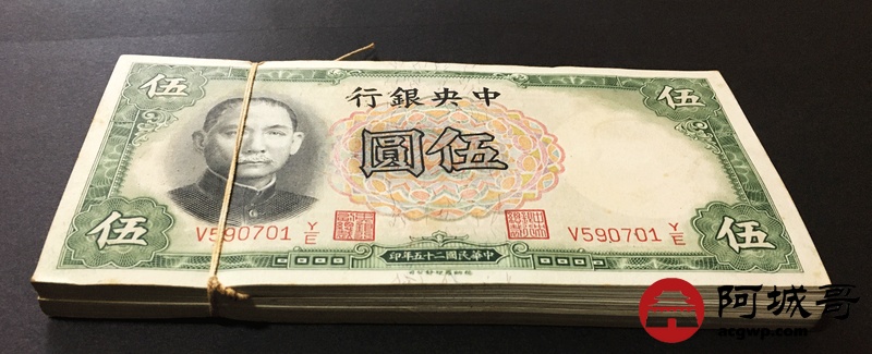 Lot:14 民国二十五年伍圆德纳罗百连 中国人民银行