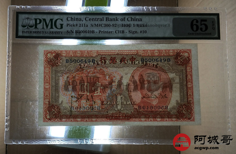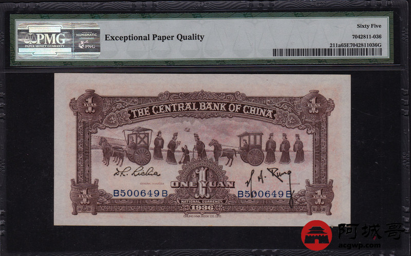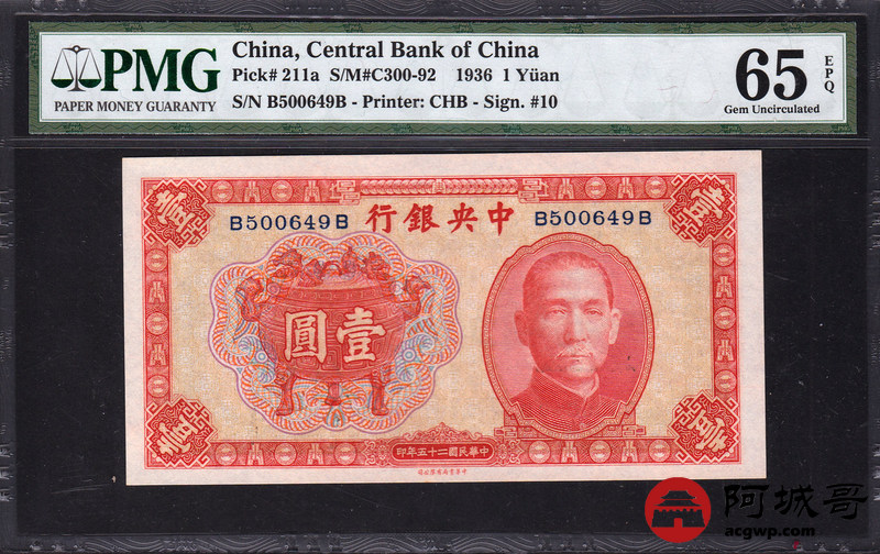 Lot:34 中华民国二十五年 壹圆红宝鼎 中央银行 PMG 65 EPQ