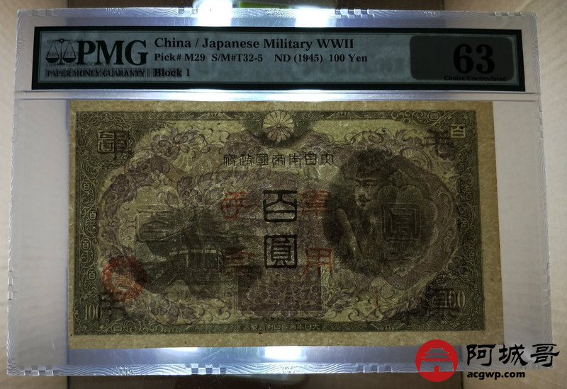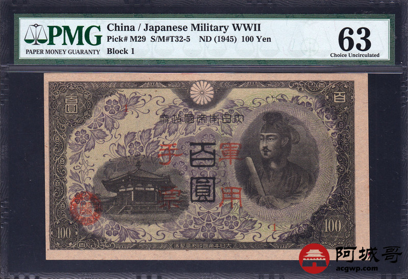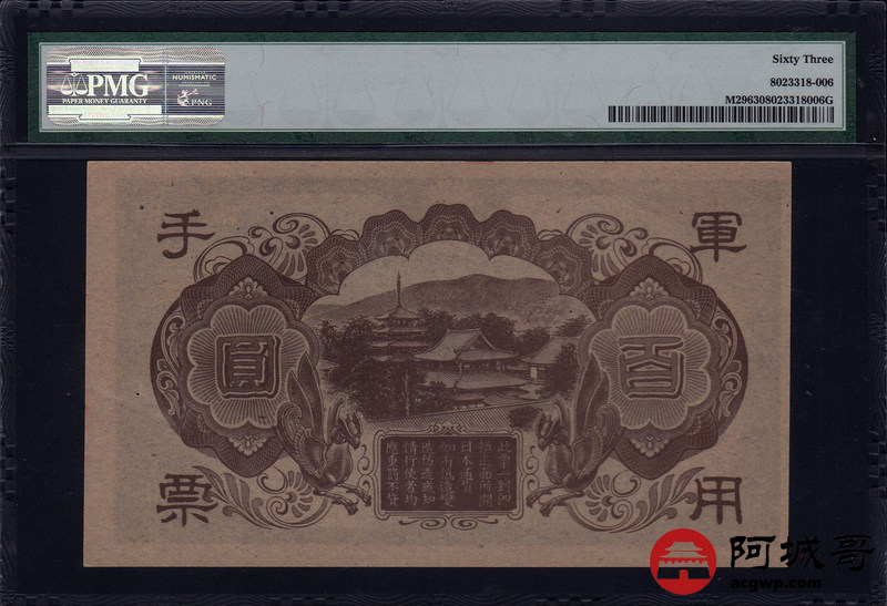 Lot:17 1945年 百圆军用手票 PMG 63