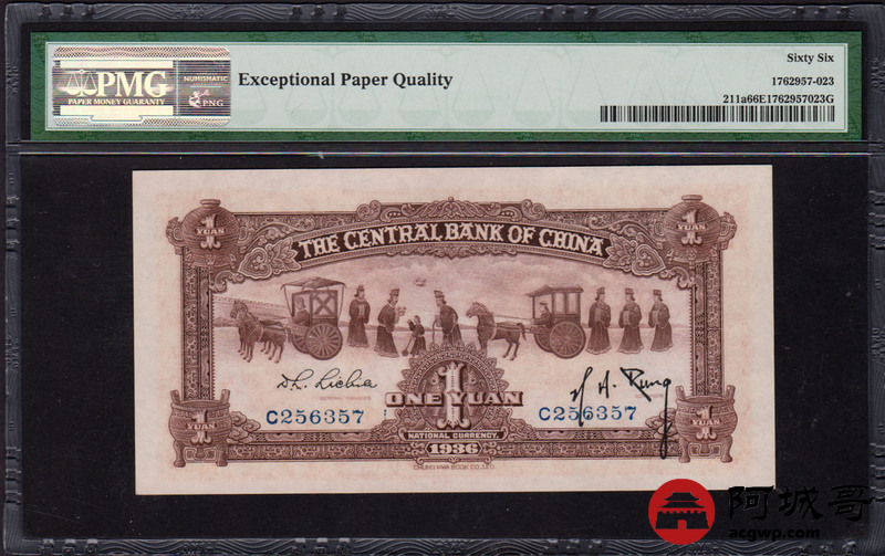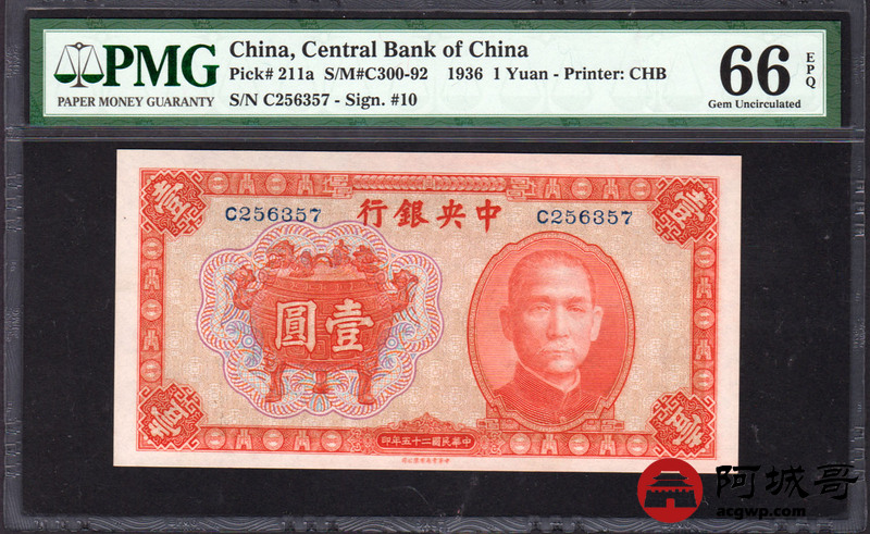 Lot:33 1936年壹圆中央银行 PMG 66EPQ