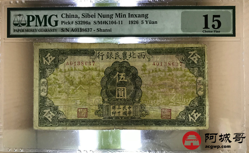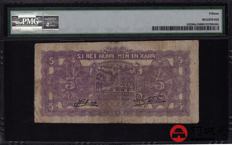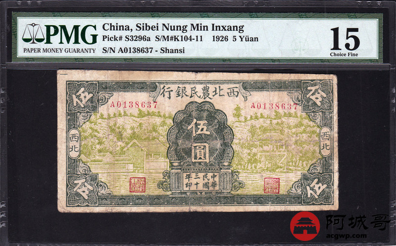 Lot:8 民国30年 西北农民银行 伍圆 PMG 15 稀少