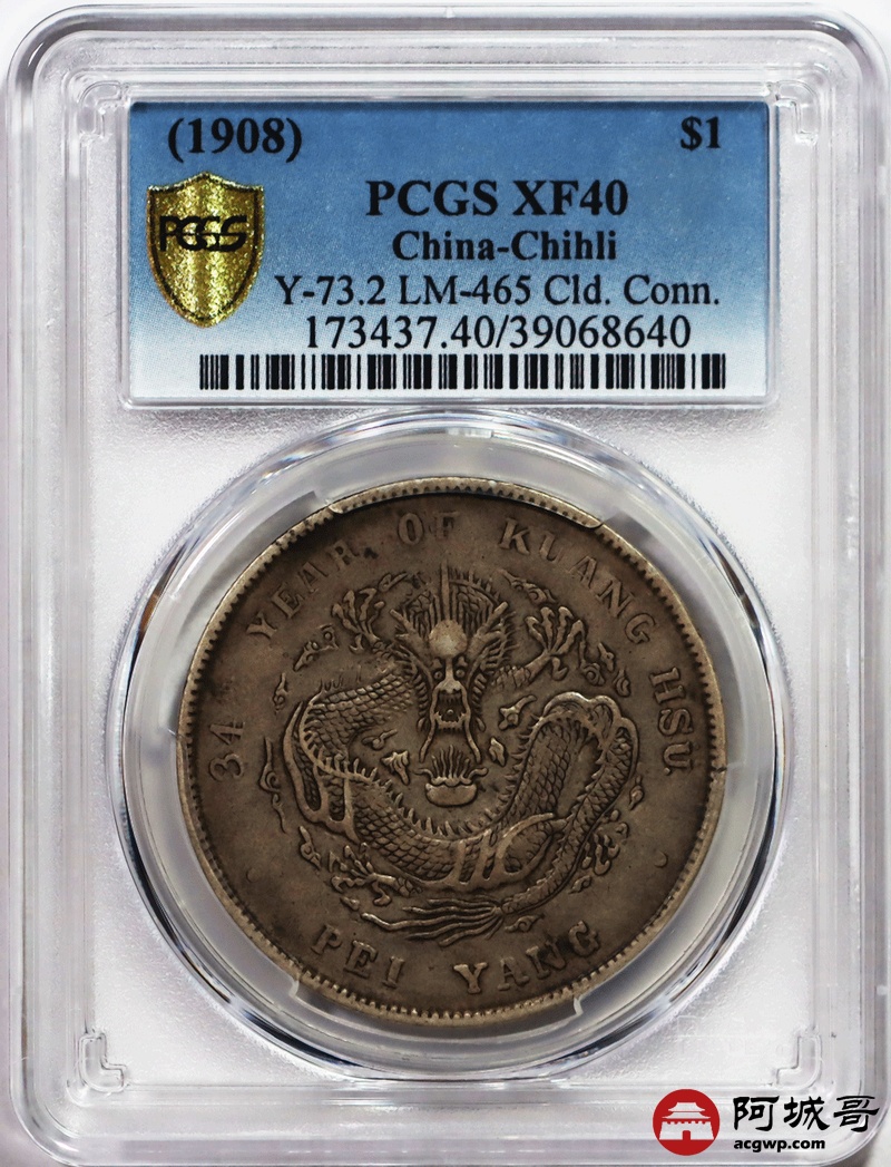 Lot:7 北洋34年七钱二分 五彩包浆 PCGS XF40