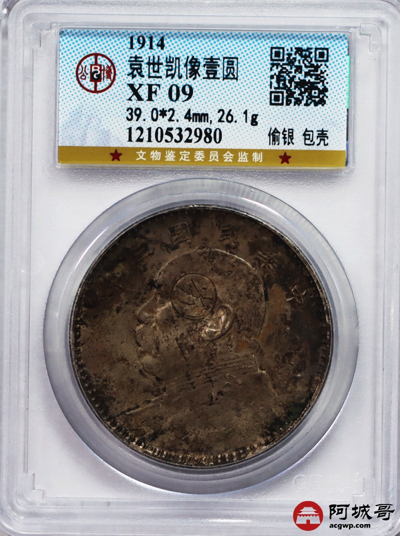 Lot:49 老包浆三年大头壹圆偷银包壳 公博 XF09