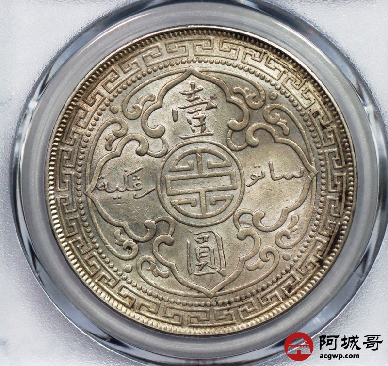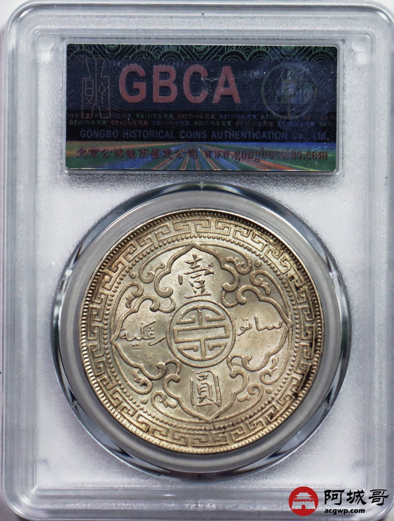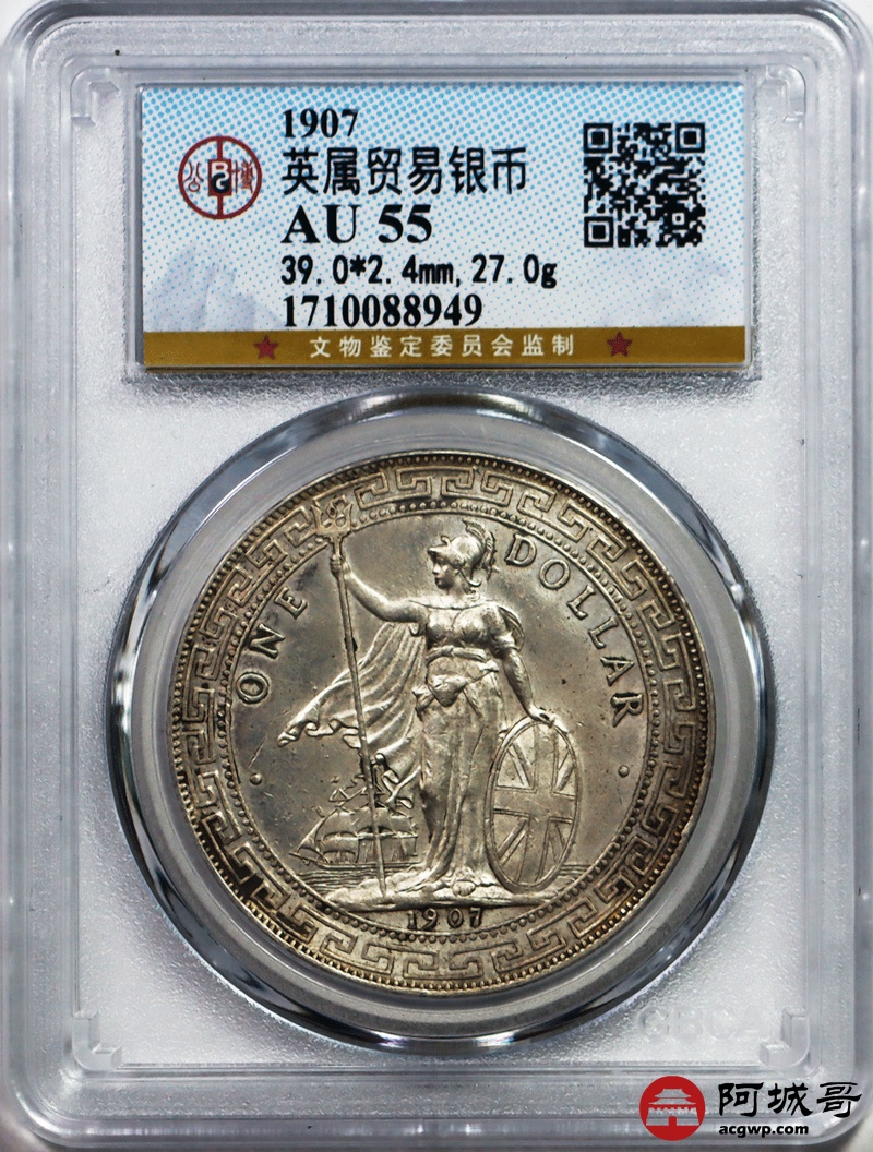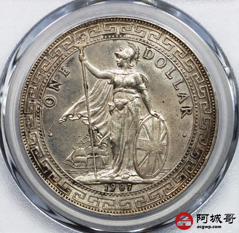 Lot:50 底光深打1907年B版站洋壹圆 公博 AU55