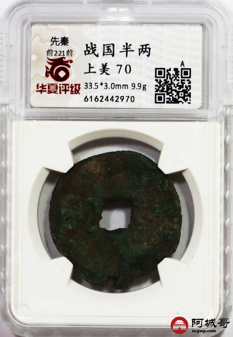 Lot:56 战国半两9.9克 华夏评级上美70