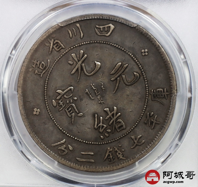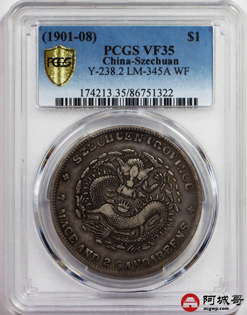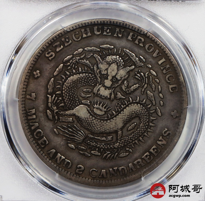 Lot:null 原味老包浆 四川光绪七钱二分 大头龙 PCGS VF35
