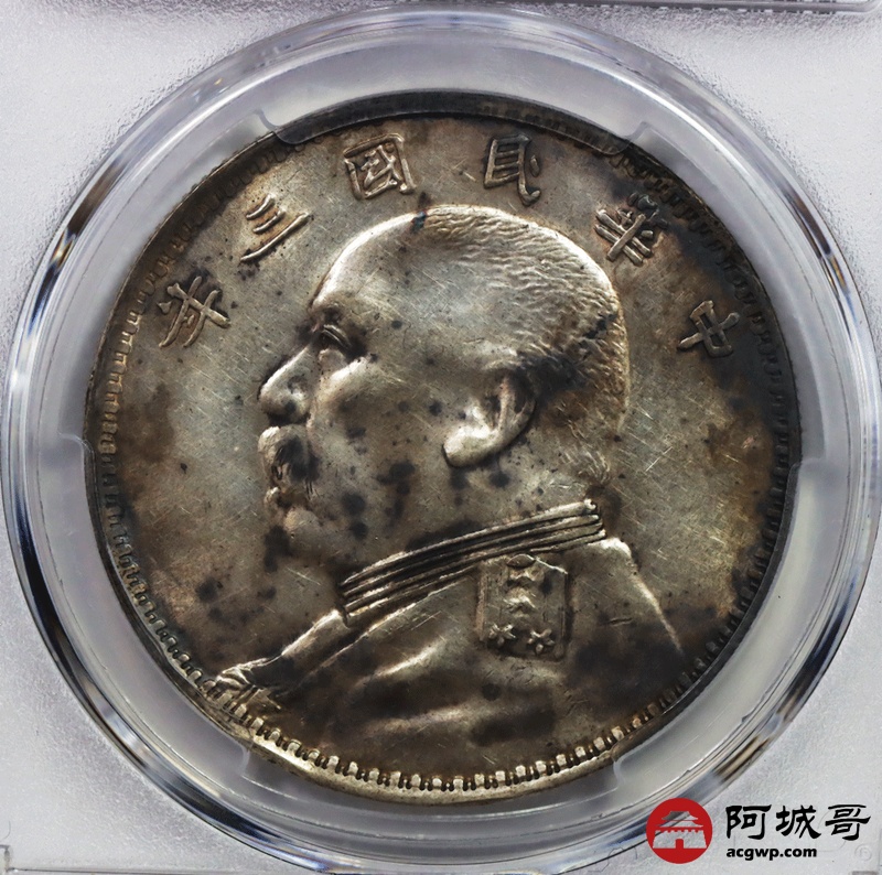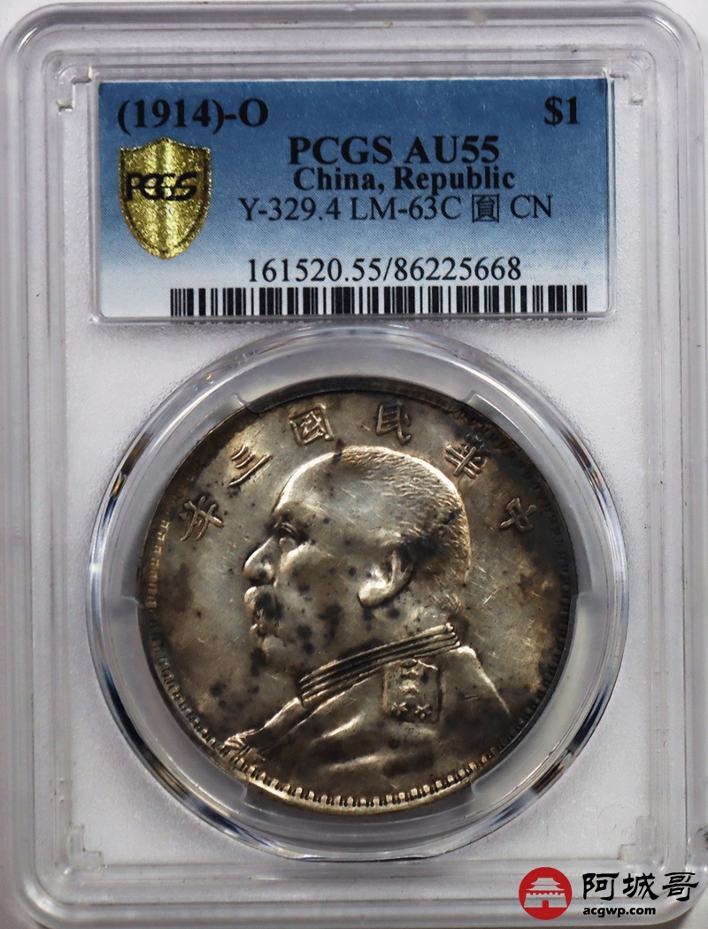 Lot:null 底光 三年大头壹圆 O版 PCGS AU55