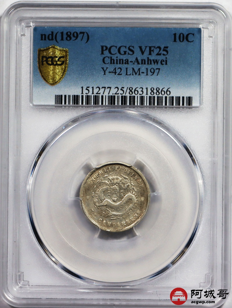 Lot:20 安徽光绪七分二厘 PCGS VF25