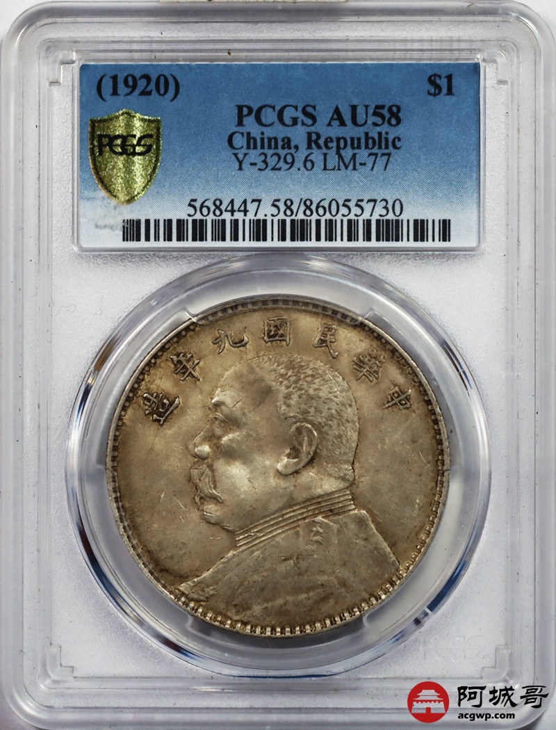 Lot:24 民国九年大头壹圆 PCGS AU58