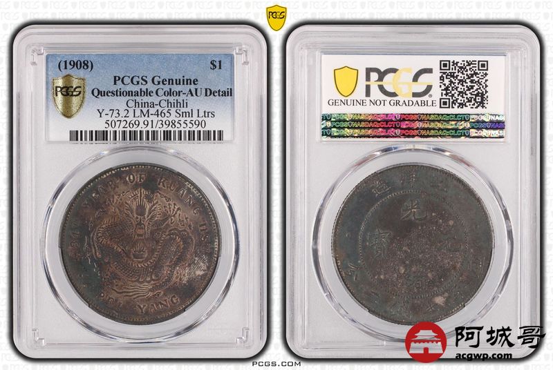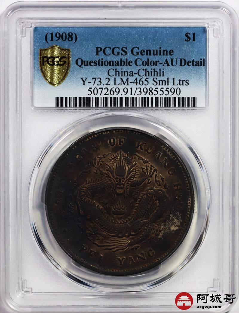 Lot:8 五彩小字版北洋34七钱二分 PCGS AU